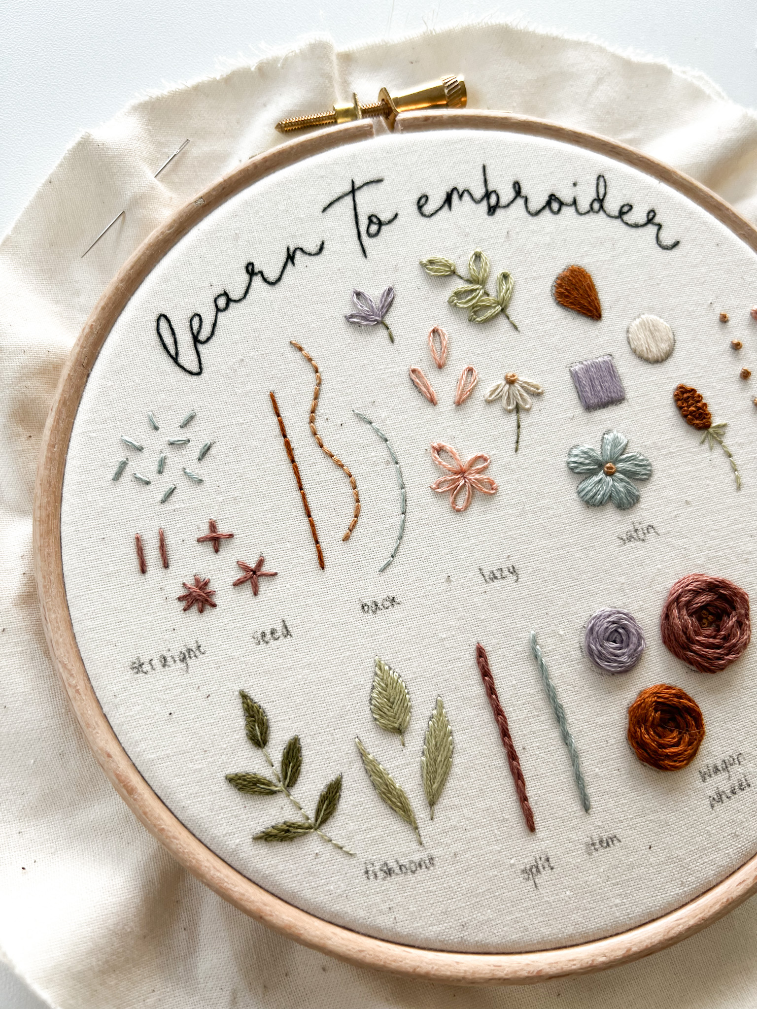 Learn 10 embroidery stitches and our best tips + tricks for getting started in our comprehensive online Beginner Course